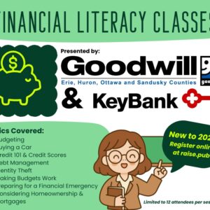 We’re very excited to be partnering with Key Bank to present Financial Literacy Classes in Sandusky & Norwalk. Each session will include light refreshments, a drawing for a gift card & a certificate of completion. Participants will also have the option to sign up for one-on-one budgeting mentorship. Topics covered will be budgeting, buying a Financial Literacy Classes